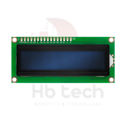Alphanumeric LCD display. It presents values in two lines, 16 characters in each. It is powered by 5V. It is characterized by extremely simple operation, high availability, and numerous support for many microcontrollers.